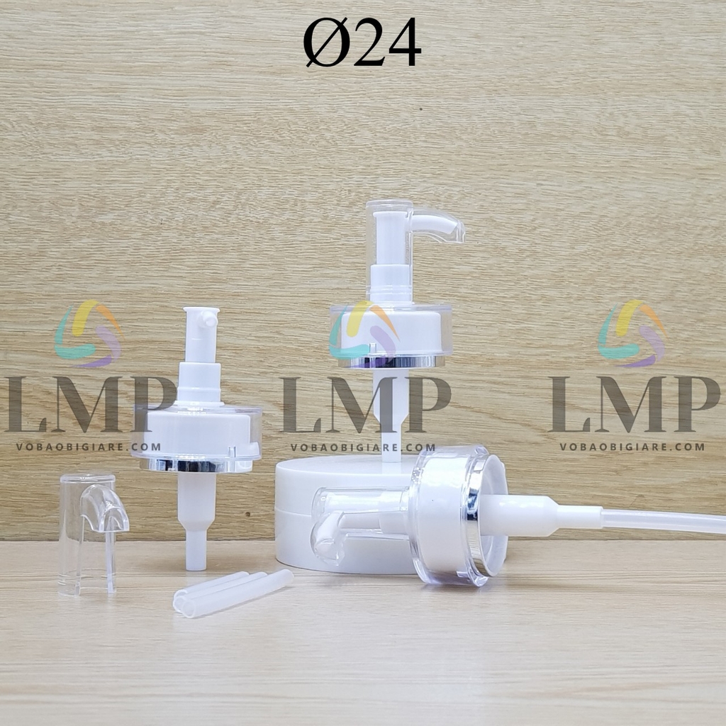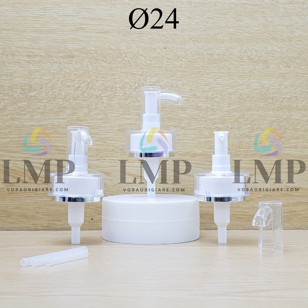 Chất liệu : đầu bơm nhựa PP, nắp viền và nắp chụp nhựa PS