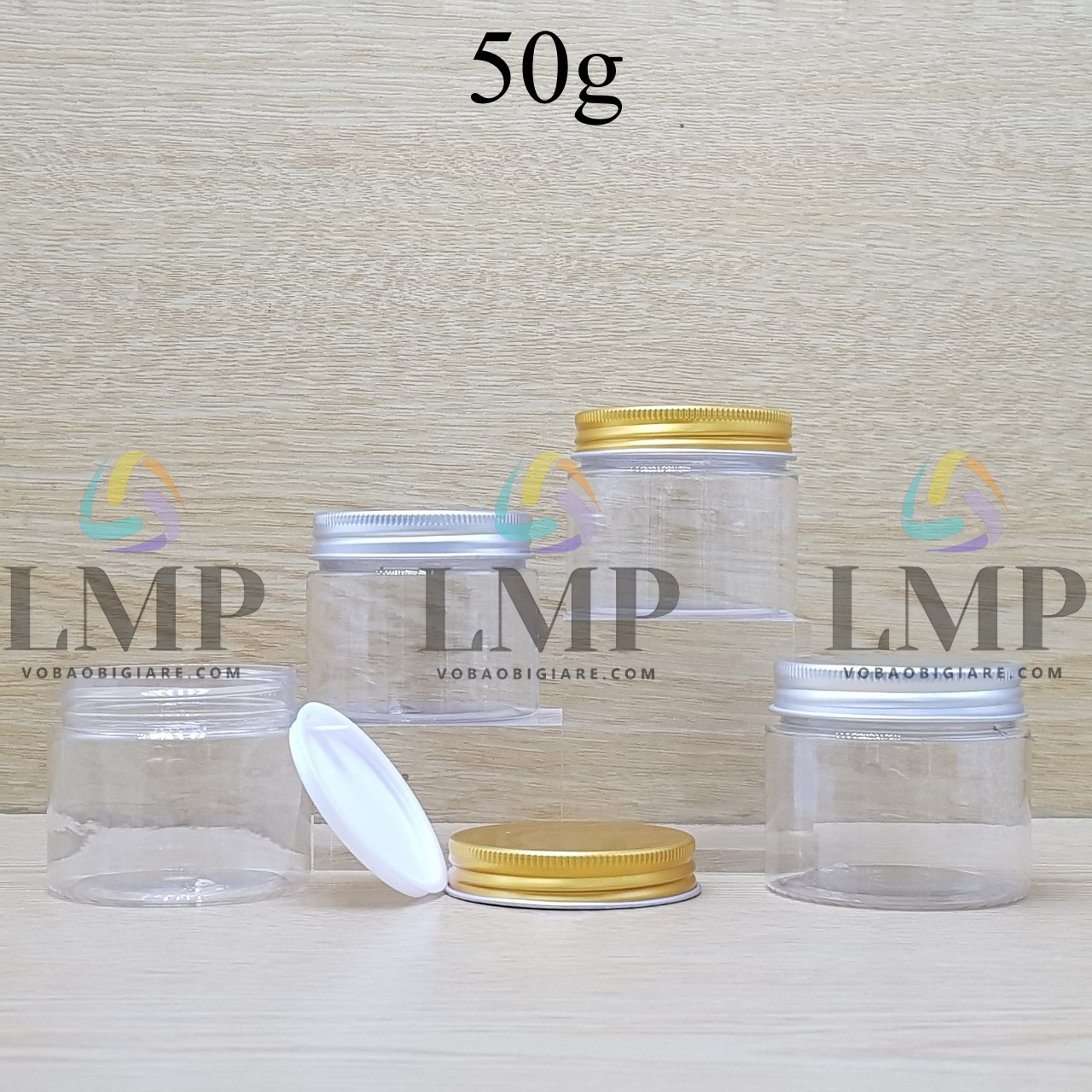 Chất liệu : thân hũ nhựa PET, nắp nhôm